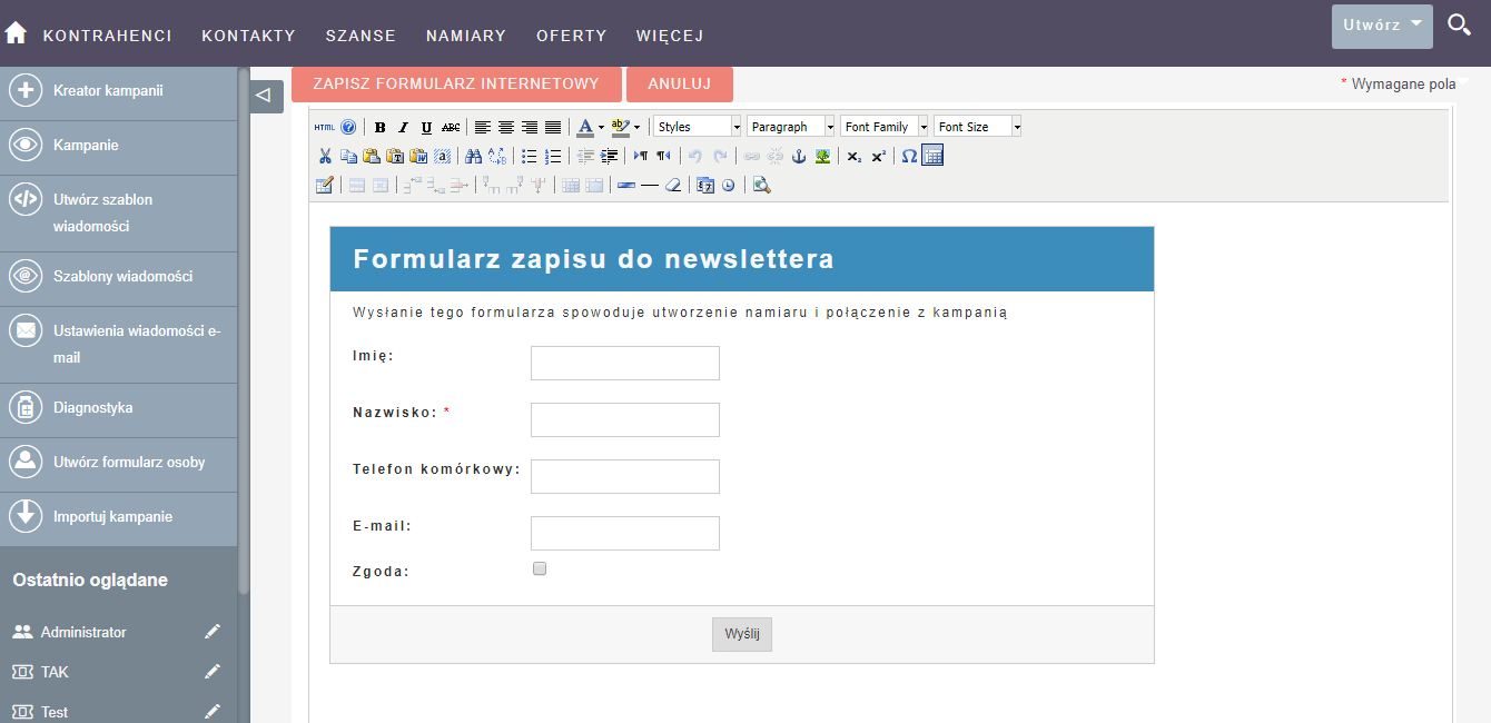 Адаптуючи систему до положень GDPR, виробник SuiteCRM зосередився насамперед на елементі розсилкових кампаній. Підтверджений механізм згоди (подвійна згода) додано до поточної версії програмного забезпечення – SuiteCRM 7.10. Після заповнення форми web-to-lead (підготовленої в SuiteCRM) на вказану адресу електронної пошти надсилається автоматично згенероване повідомлення з посиланням для підтвердження наміру підписатися. Якщо особа, яка заповнила форму, не підтвердить таким чином згоду на використання електронної пошти, жодний контент не може бути спрямований на неї. Це захист, який блокує можливість надання чужої електронної пошти для маркетингової комунікації. Підтвердити згоду може тільки той, хто має доступ до поштової скриньки.
